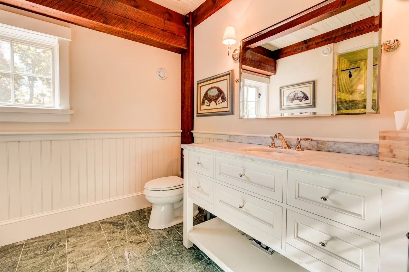 Mountain Living is perched in the mountains of Southern Vermont. This home features a Douglas Fir timber frame harvested from a West Coast lightning strike. The reclaimed oak and brick paver floors serve as the perfect backdrop for the many custom details in this sprawling residence.