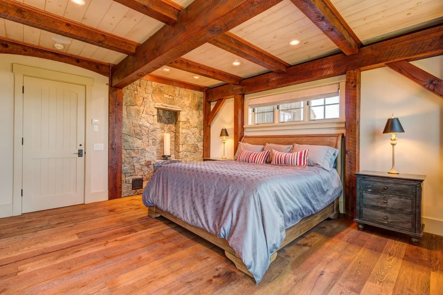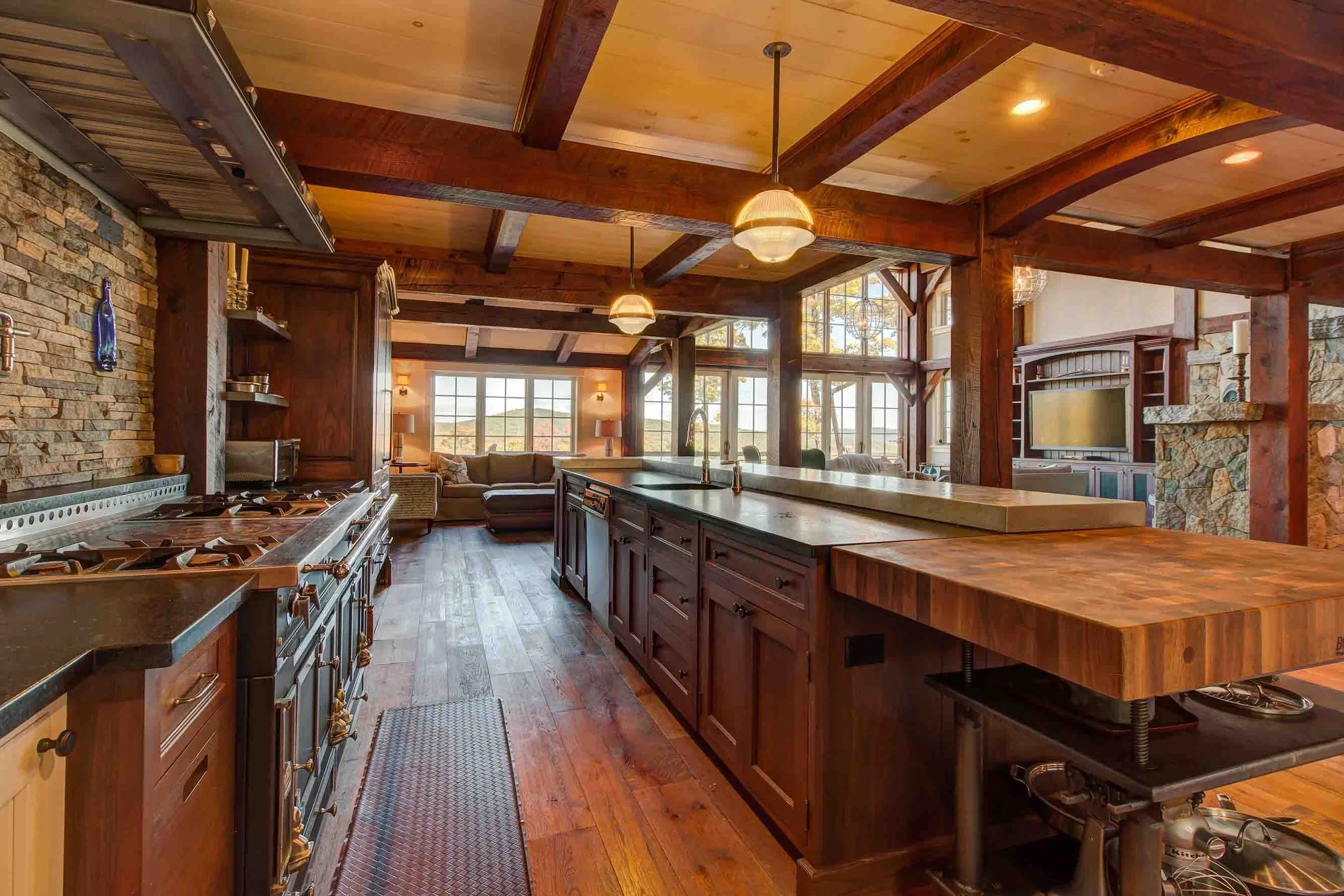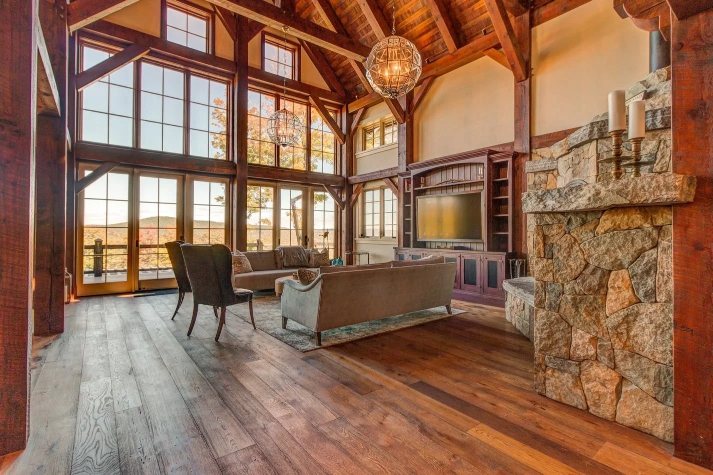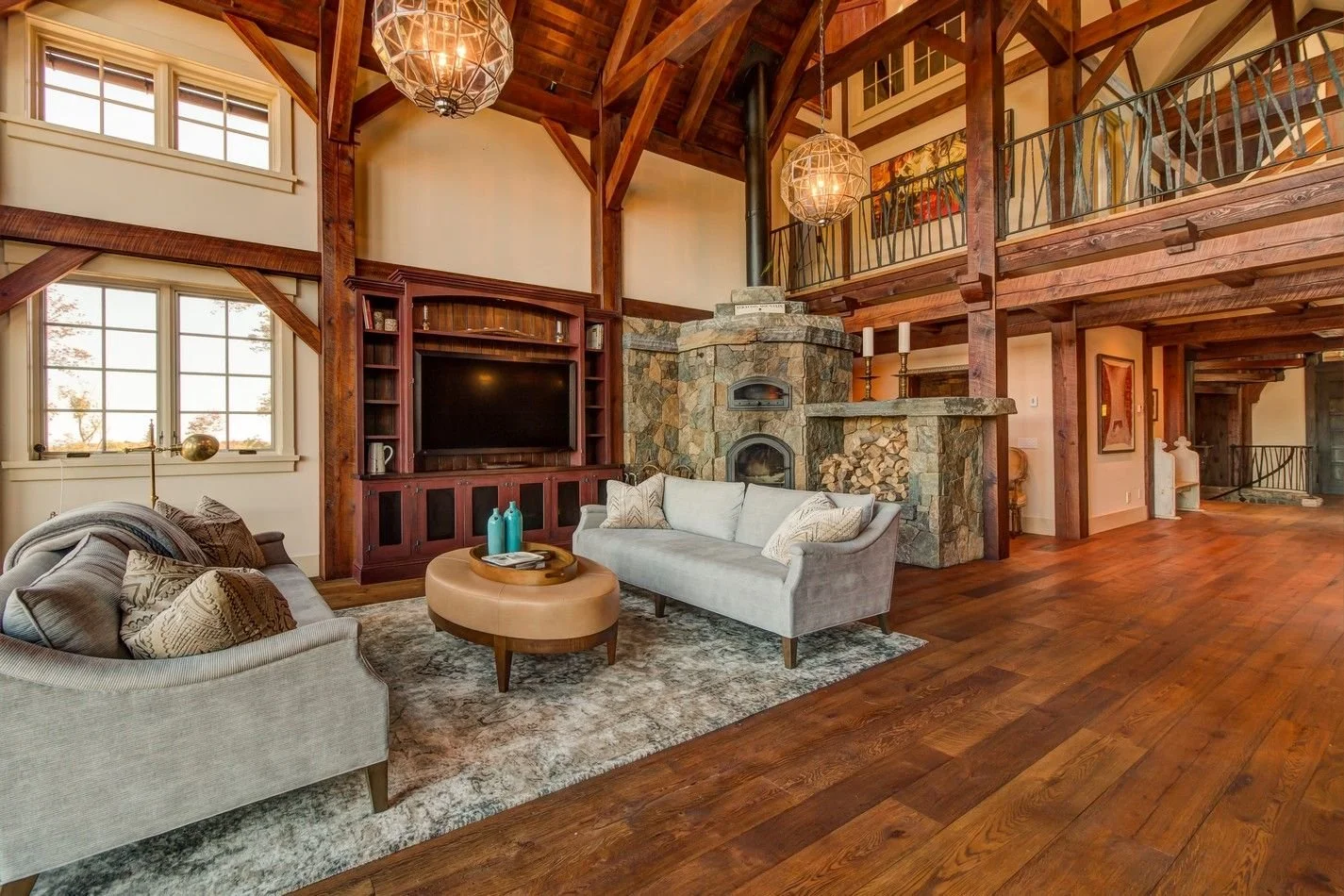 Mountain Living is perched in the mountains of Southern Vermont. This home features a Douglas Fir timber frame harvested from a West Coast lightning strike. The reclaimed oak and brick paver floors serve as the perfect backdrop for the many custom details in this sprawling residence.