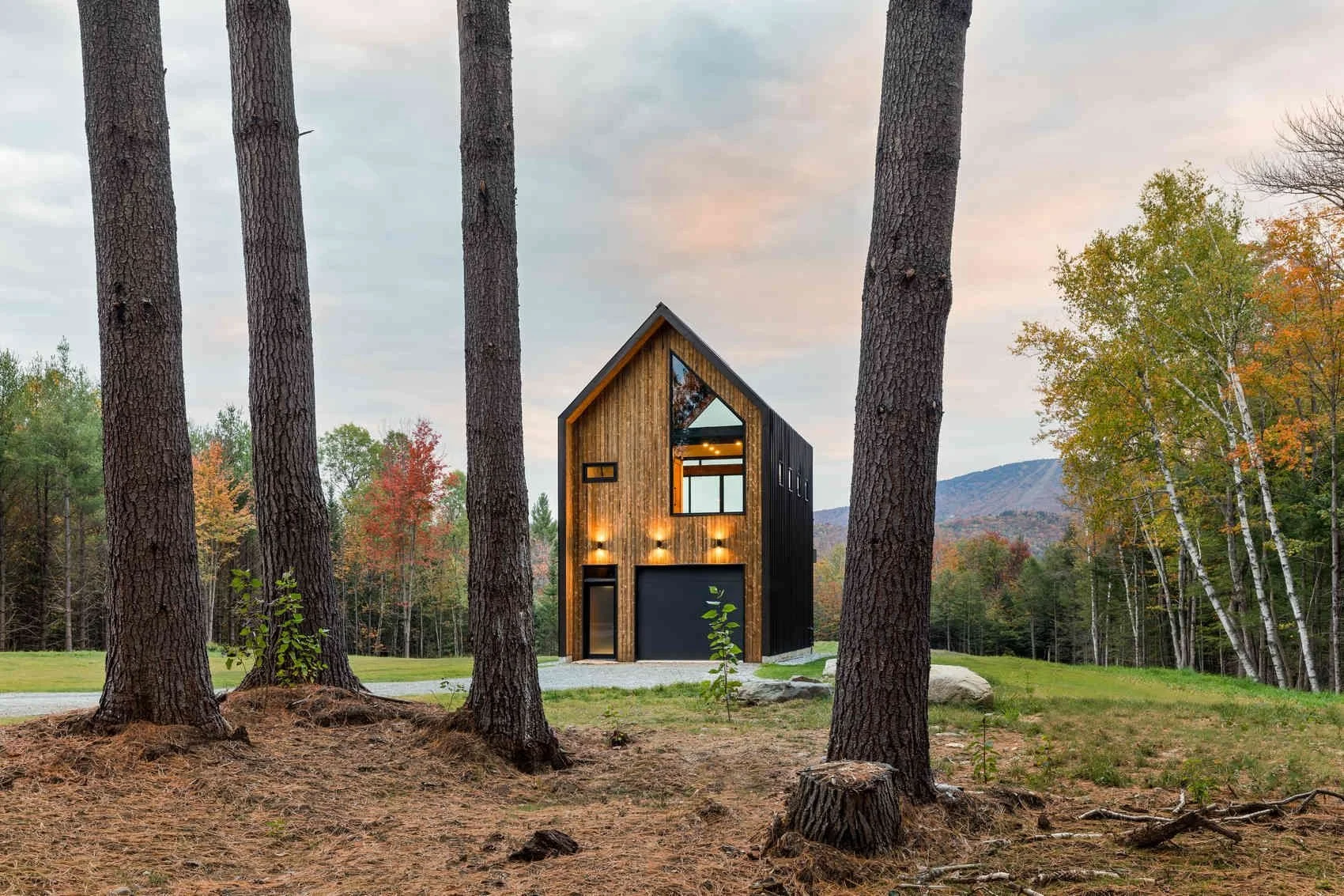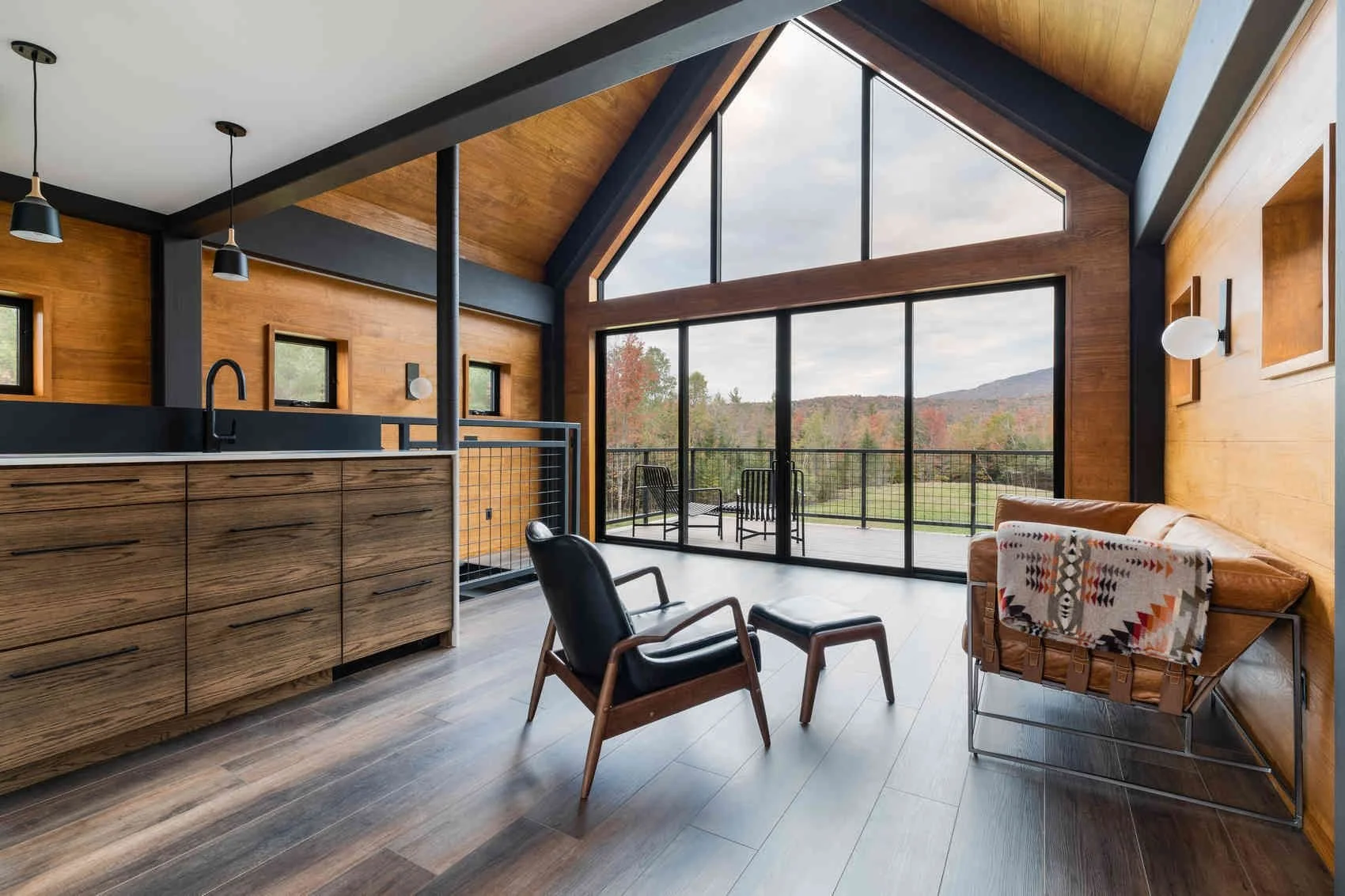 Modern Car Barn is a single drive-through car barn with hang-out space, kitchenette, full bathroom & loft above.