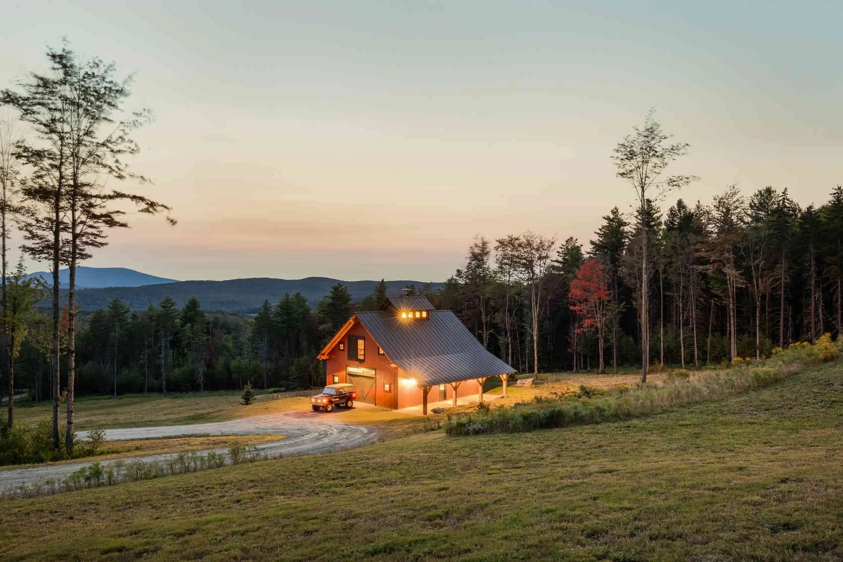 Car Barn III is a medium size timber frame barn built for car and equipment storage in a classic red color.