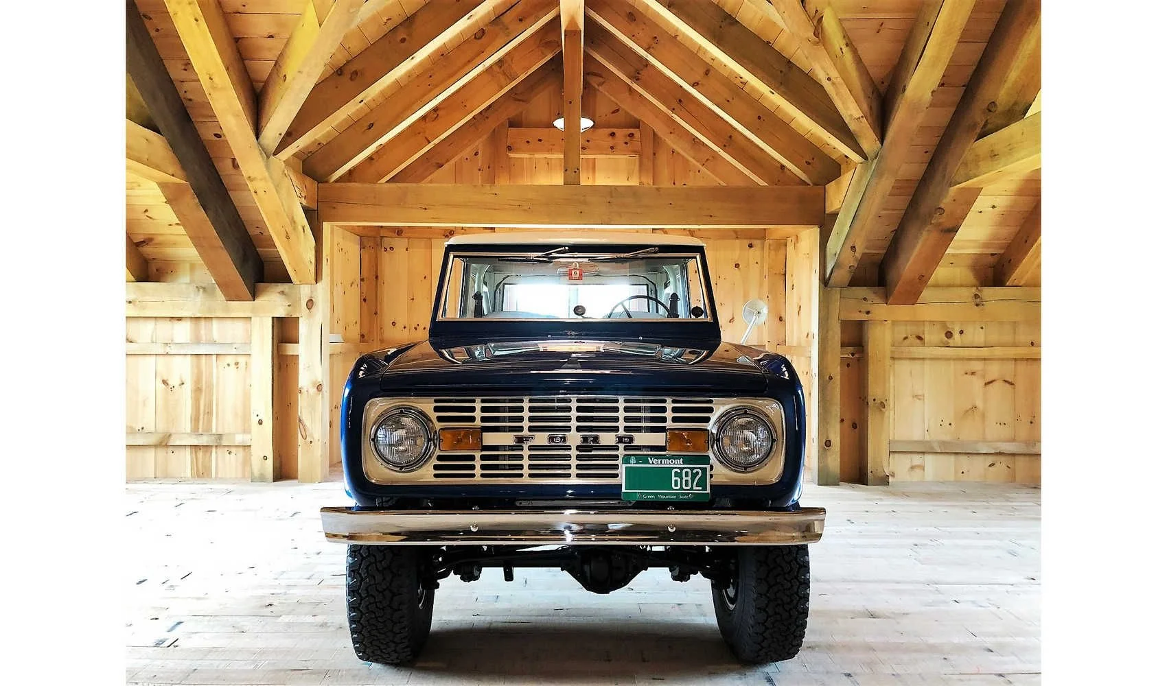 Reclaimed Barn is a timber frame high-drive barn with a three-car garage on the lower level and a drive-in second floor.