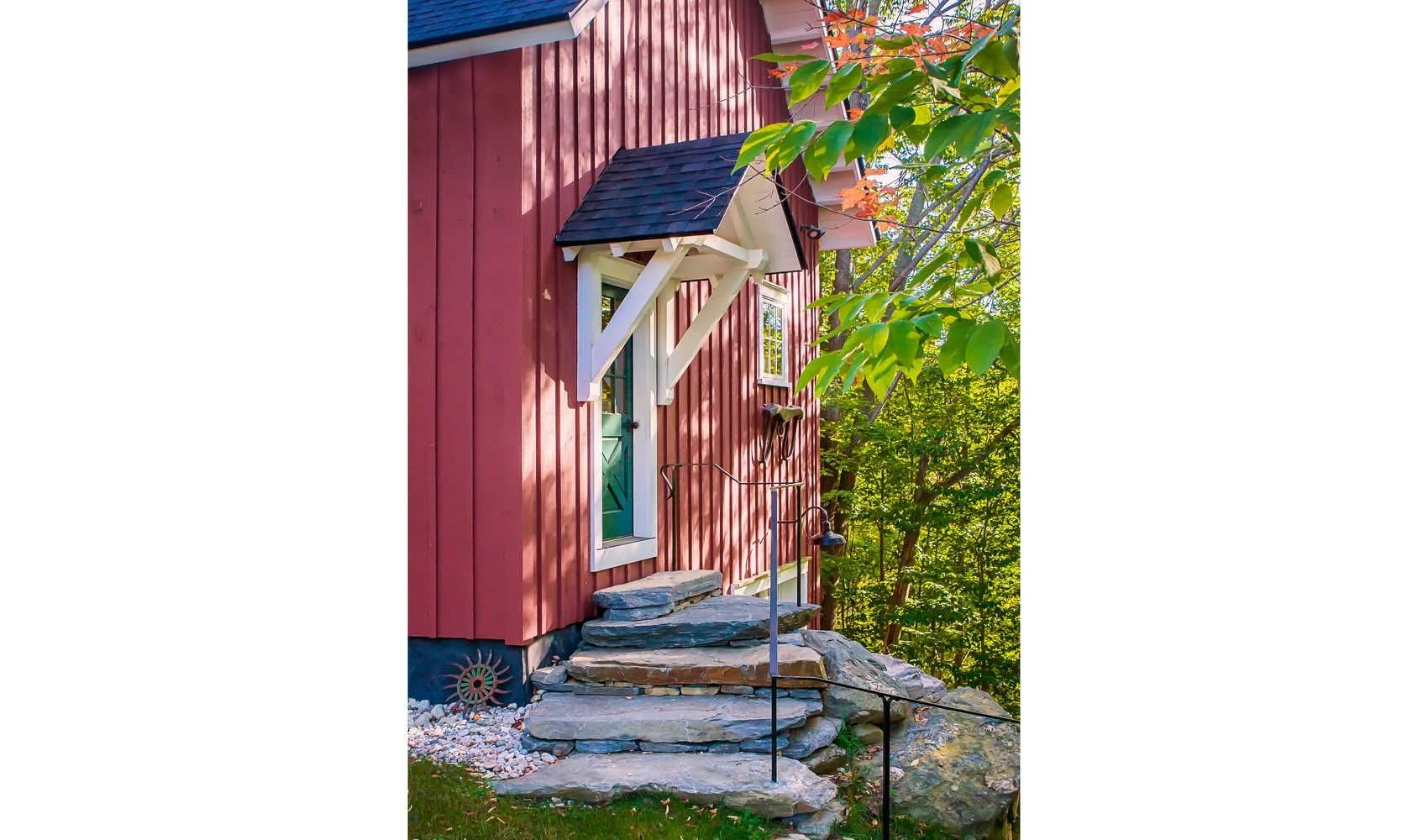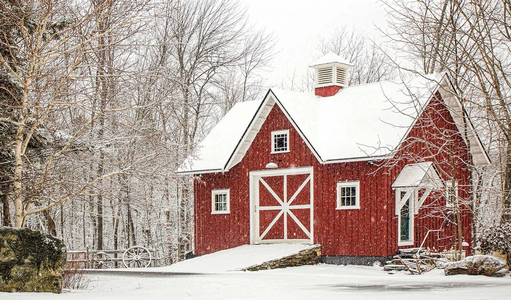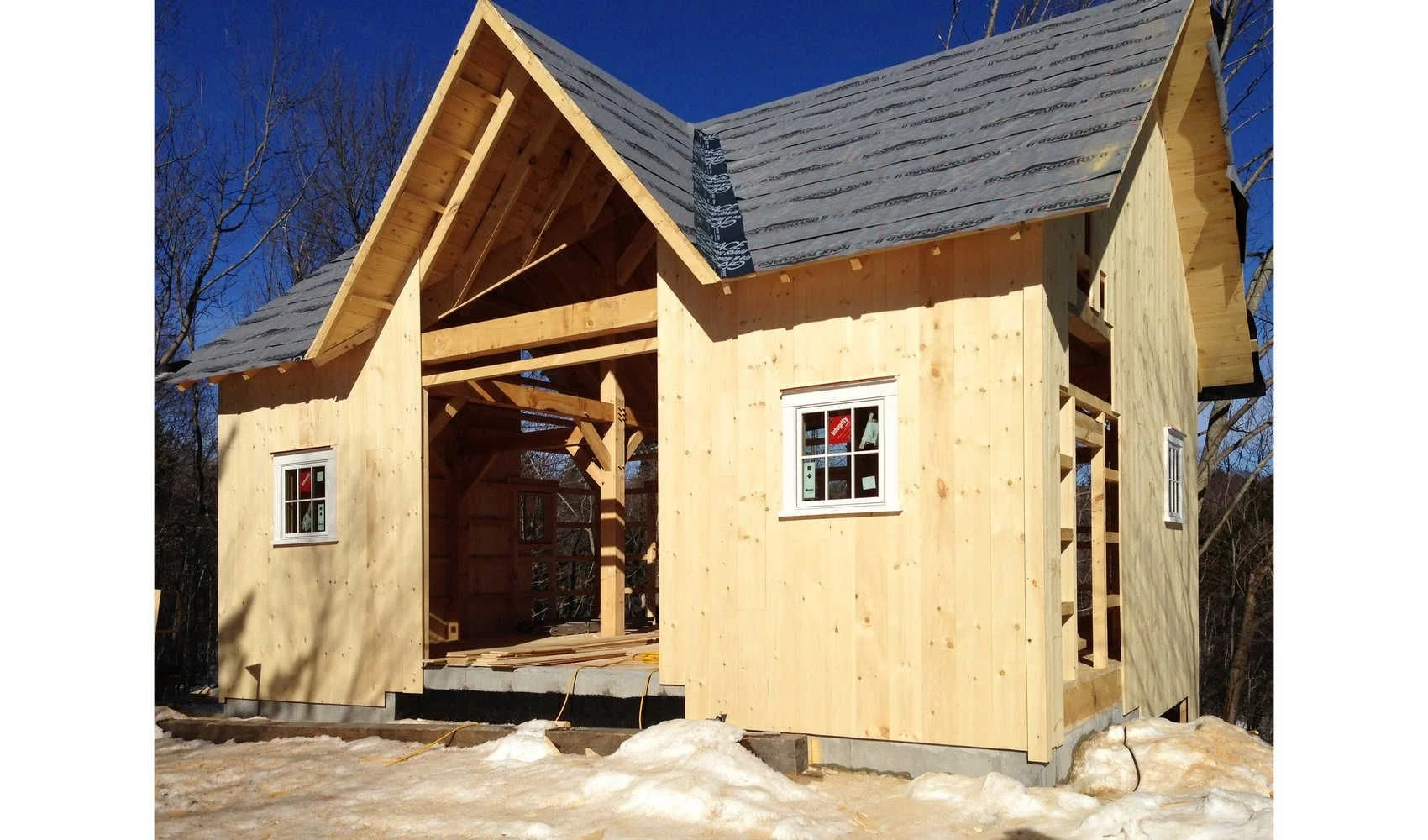 Snow Barn is a small timber frame barn built in a traditional style, large enough to store a tractor and gardening supplies.